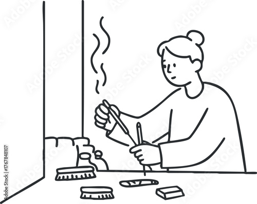 A person cleaning their teeth in a bathroom, representing daily hygiene and self-care routines.