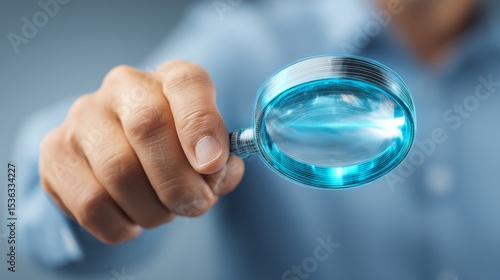 A person examining details through a magnifying glass, symbolizing focus and analysis.