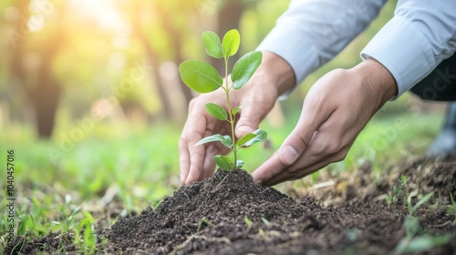 A person gently planting a young sprout in rich soil, symbolizing growth, care, and the importance of nurturing the environment.
