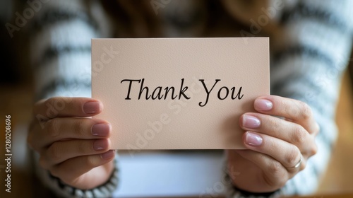 A person holding a "Thank You" card with a smile.