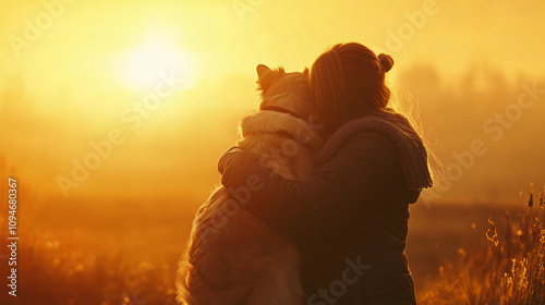 A person hugging their dog after a long walk, experiencing a deep sense of companionship and joy.