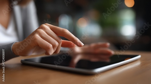 A person interacting with a tablet, showcasing technology and engagement in a cozy environment.