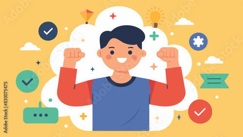 A person practicing positive selftalk reminding themselves of their strengths and accomplishments.. Vector illustration