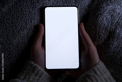 A person sits on a sofa, using a smartphone to engage in online shopping or social media, with a screen and mockup highlighting UX and internet search.