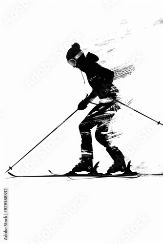 A person skiing down a snowy mountain slope with fresh powder and no tracks