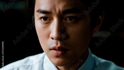 A person with a worried expression, looking over their shoulder. Guilt, paranoia, fear, criminal mind, suspense.