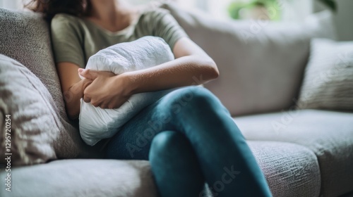 A person with an elbow injury resting with an ice pack on a sofa in a cozy living room. Featuring comfort and recovery