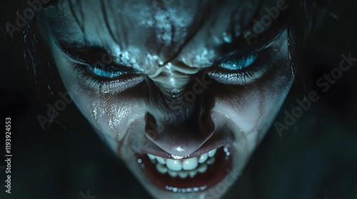 A person with their teeth clenched tightly, their eyes squeezed shut, tears forcing their way out, the tension in their jawline highlighted by dramatic lighting