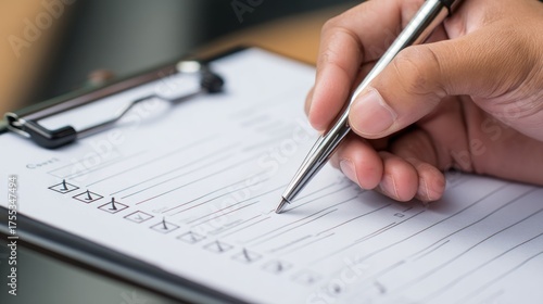 A person's hand holding a pen over a clipboard with a list of tasks on it.