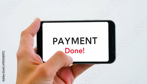 A person's hand holding a smartphone displaying the text "PAYMENT DONE" with a checkmark icon