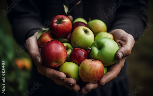 A person's hands gently cradling a variety of ripe apples, showcasing their vibrant hues.