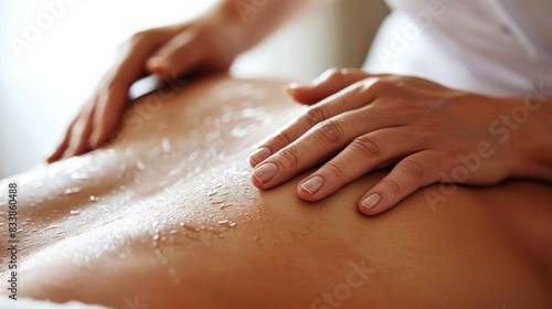 A person's hands gently massaging a person's back with oil providing a soothing spa experience.