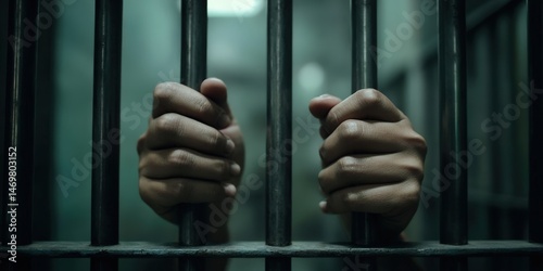 A person's hands holding the bars of their prison cell