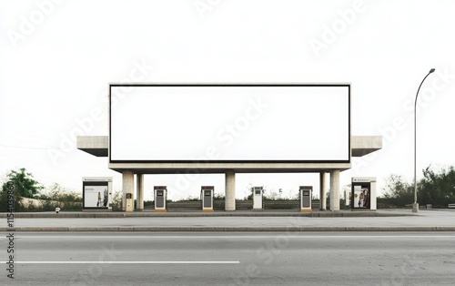 A photo of a blank billboard at the entrance to an oil station, with a white background, perfect for design and advertising mockup.