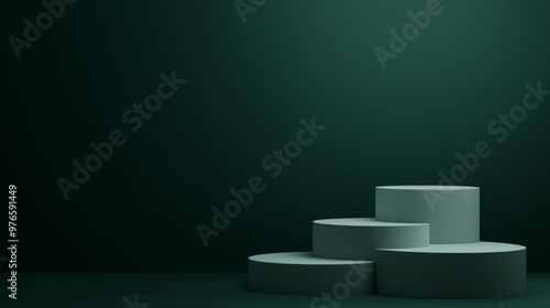 A photo of an empty 3D podium symbolizing success and productivity, set against an abstract business backdrop, isolated on a dark green background