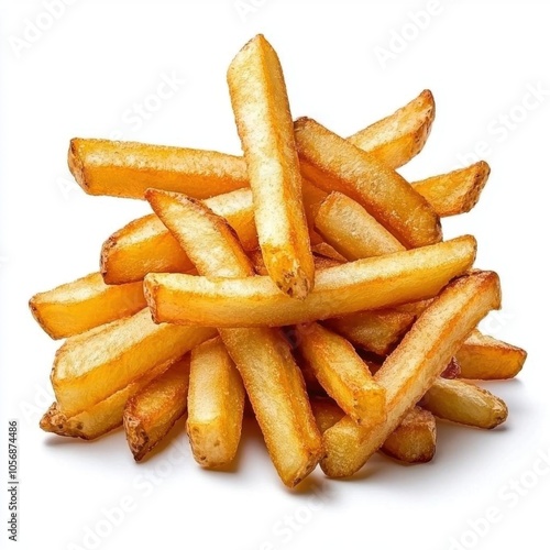 A photostock of crispy French fries on a white background, golden and delicious.