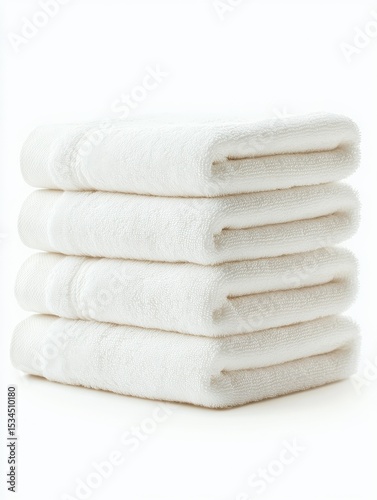 A photostock of perfectly folded white towels stacked symmetrically, isolated on a clean white background, clean and soft, High Quality