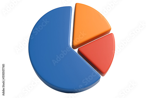 A pie chart with three sections in blue orange and red on a black background on transparent background