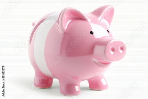 A piggy bank clipart, savings element, 3D illustration, pink and white, isolated on white background