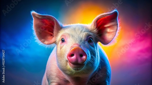A piglet's curious gaze meets a vibrant backdrop of swirling colors, capturing the essence of youthful wonder and the charm of unexpected beauty.