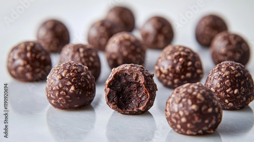 A pile of chocolate balls arranged on a clean white surface for a delicious and tempting display valentine day