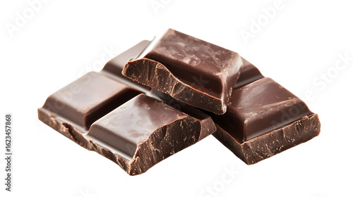 A pile of chocolate bars with a few pieces of chocolate on the ground