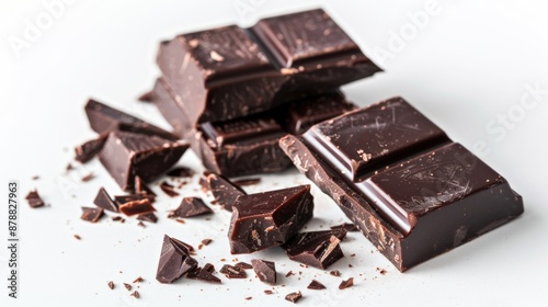 A pile of chocolate pieces arranged on a white surface, ready for use or display