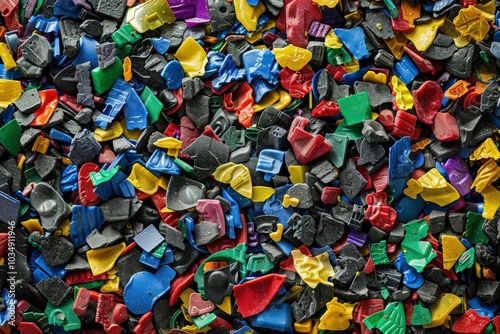 A pile of colorful plastic pieces scattered on the ground, generative ai image