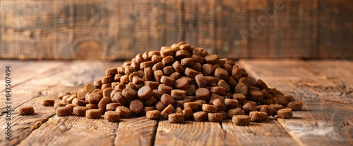 A Pile Of Dry Dog Food On A Rustic Wooden Background, HD