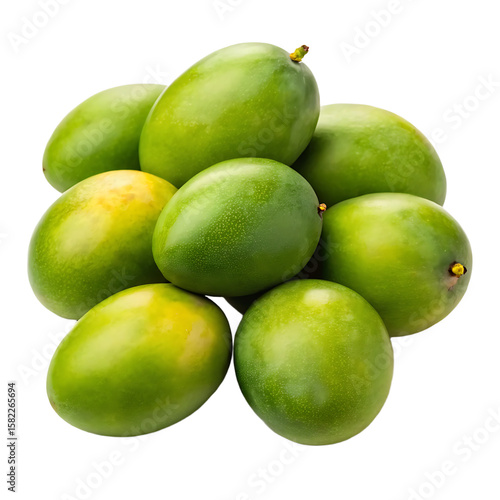 A pile of fresh green mangoes with a yellowish hue isolated on transparent background