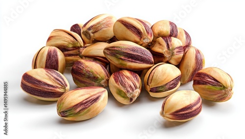 A Pile of Fresh Roasted Pistachios Nuts Isolated on White Background Healthy Snack Food