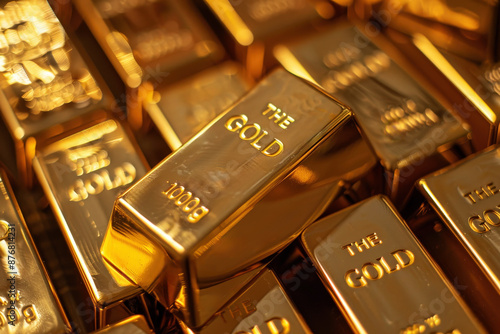 a pile of gold bars sitting on top of a table next to each other on a table top with a black background, generative ai