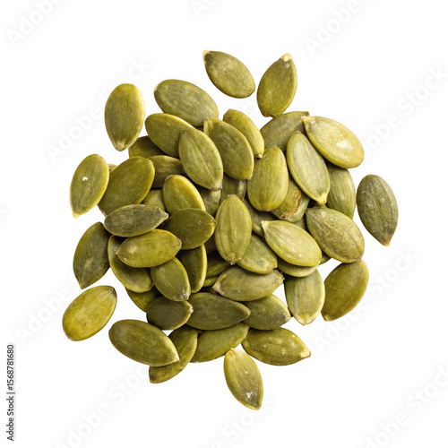 A pile of green pumpkin seeds isolated on transparent background for food photography
