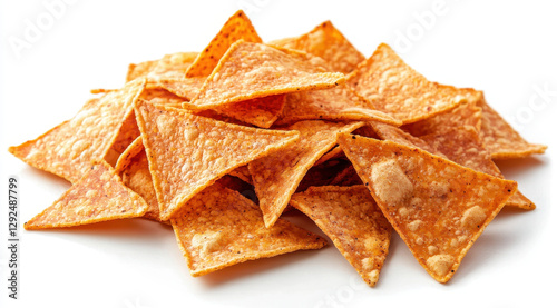 A Pile of Spicy Orange Tortilla Chips on White Background