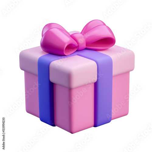 A pink gift box isolated on a transparent background, elegantly tied with a satin ribbon and featuring a glossy finish