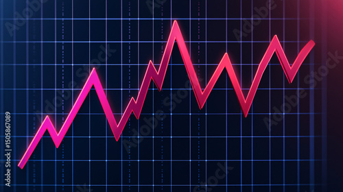 A pink line graph with sharp peaks and valleys is displayed on a dark grid background, indicating fluctuating data trends.