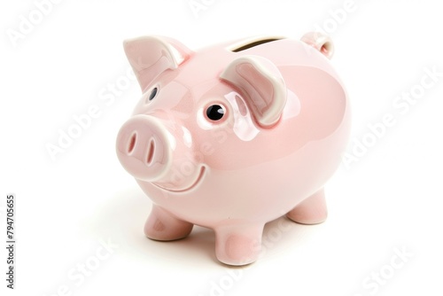 A pink piggy bank is placed on top of a white table