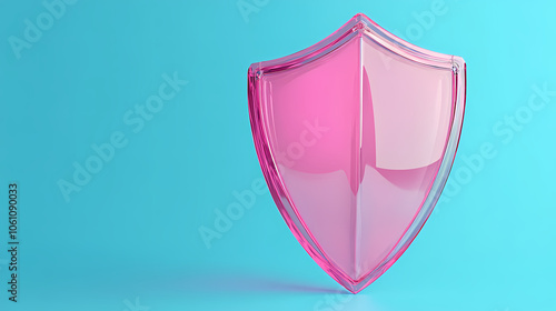 A pink translucent shield on a blue background symbolizes protection, security, and digital safety in this 3d rendered stock photo. Cyber Fortress. Illustration