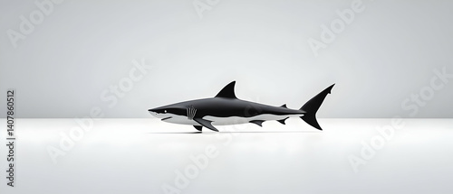 A Pixel Art Style Black And White Shark on a White Background in Minimalist Setting