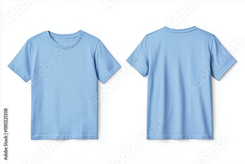 A plain blue color T-shirt mockup from the front and back view, showcasing its simple design and color.