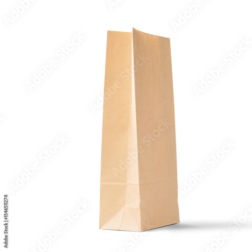 A plain brown paper bag standing upright, typically used for carrying food or small items.