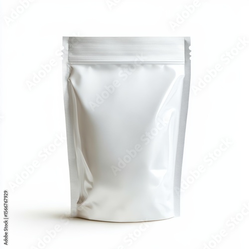 A plain, silver, resealable stand-up pouch with a zip-lock closure on a white background.