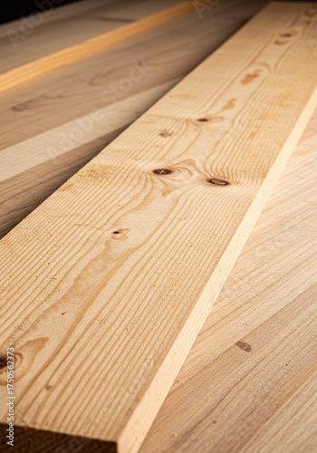 A plain, unfinished wooden plank lies ready for various home improvement projects or decorative uses, showcasing natural grain and texture ,pine ,everyday ,background