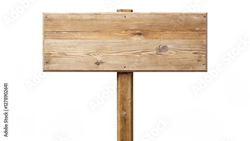 A plain, unmarked signboard positioned vertically on wooden posts, suitable for messages or announcements, isolate on white background.