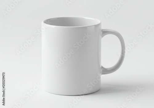 A plain white ceramic mug with a handle isolated on white background isolated on white background