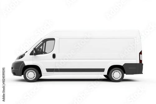 A plain white delivery van with a clean, smooth surface. The van is parked in profile, showcasing