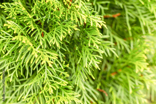 A plant for the garden. Background of nature. American tui. An evergreen tree