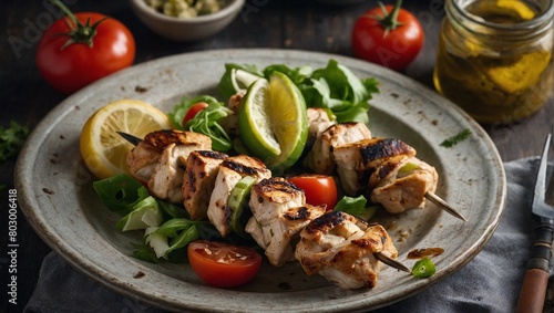 A plate of chicken souvlaki