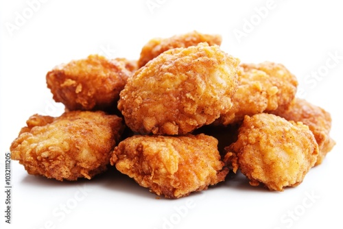 A plate of crispy fried chicken nuggets on a white background, perfect for food photography and advertising
