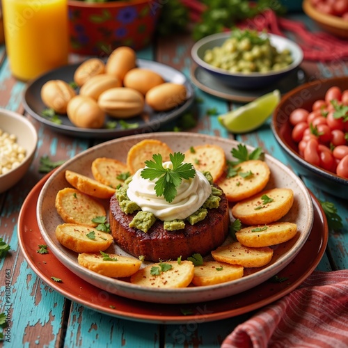 A plate of food on a table with vegetables and eggs.